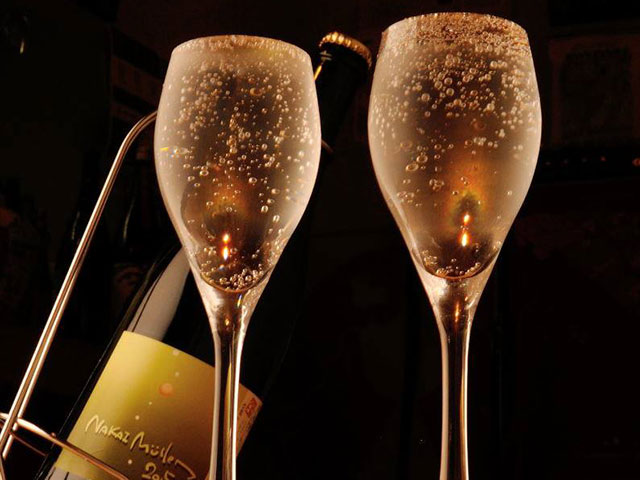 プロ愛用のリーデル社のワイングラスにて、お酒との相性を考え抜いた小皿つまみと共に
